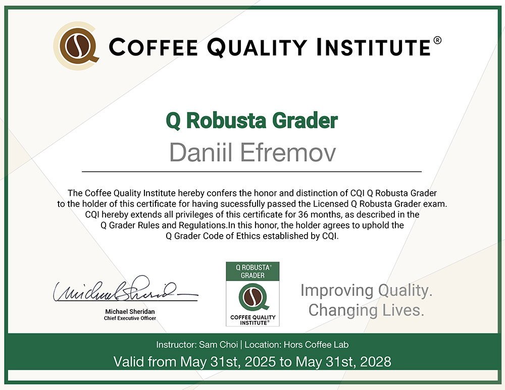 – До обучения я крайне редко пил кофе и мало знал о нем. Потрясло, что у кофе более 800 оттенков вкуса. Было интересно узнать, что кофе – это не совсем «зерно» в привычном понимании этого слова, а лишь косточки кофейных ягод. Врезалось в память и то, что в разное время года у кофе свои вкусовые колебания, букет одного и того же вида кофе, собранного в разные сезоны, будет меняться. Из-за этого может меняться плотность, выразительность кофе, а также букет от более фруктового до шоколадного и наоборот.