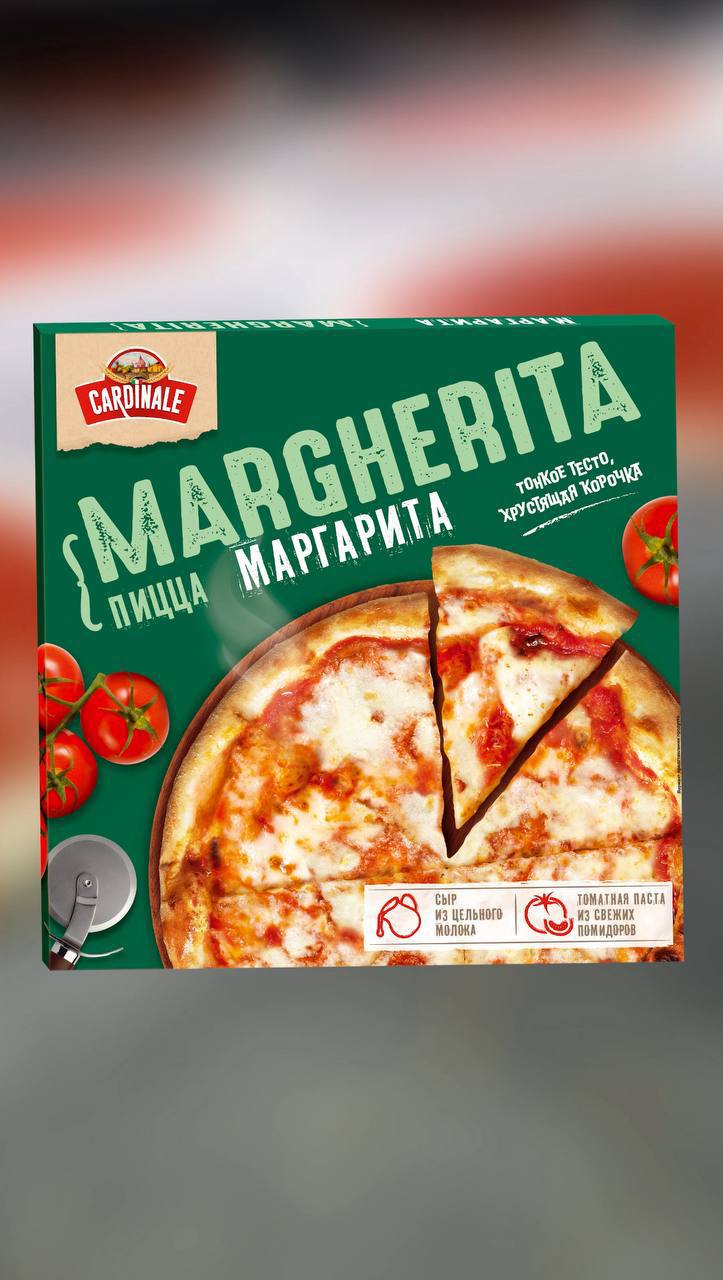 Пиццу «Cardinale» остается только поставить в духовку на 7 минут, и обед, ужин или перекус готов!